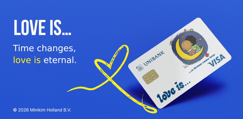SocietyUnibank has launched a limited-edition series of bank cards featuring the Love Is… design — bright, instantly recognizable, and filled with warm nostalgia. The new card combines attractive service terms with artwork inspired by the legendary illustrations, along with the opportunity to win a romantic trip to Paris.