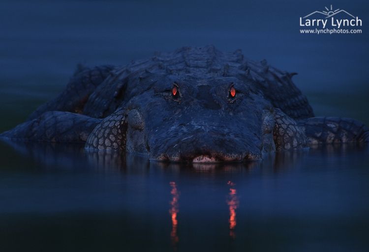 Ниже представлена будоражащая серия фотоснимков аллигаторов, сделанных Ларри и Дэвидом в ночное время. Поверь, эти устрашающие светящиеся в темноте глаза теперь не выйдут с твоей головы!Это фото под названием «Предупреждающий ночной свет» принесло Ларри награду как лучшему фотографу дикой природы в номинации портреты животных.