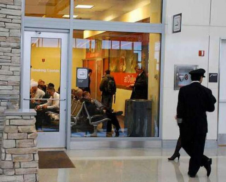 ОбществоВо всем мире идет суровая борьба против курения, поэтому в общественных местах можно курить только в специально отведенных для этого местах. Эта комната находится внутри Вашингтонского аэропорта имени Даллеса, где каждый курильщик может отвести душу, скурив парочку сигарет. Благодаря прозрачности стены, можно увидеть шокирующее различие между потолком комнаты для курильщиков, и потолком, находящимся вне досягаемости сигаретного дыма.