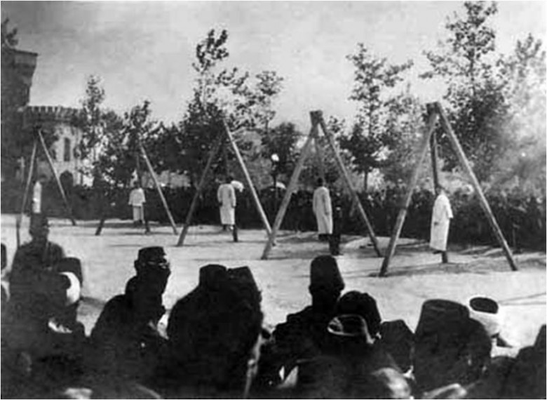Тиграна повесили на дереве вниз головой, после чего его мать и всех нас побоями усадили вокруг дерева. Шесть турецких аскеров на наших глазах изнасиловали 14-летнюю сестру Тиграна. Если кто то не мог видеть этого и отворачивался, то турки, схватит его за волосы, заставляли смотреть на это страшное зрелище.