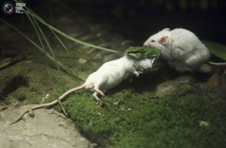 Мышь пытается спасти свою сородичку в зоопарке в Ханчжоу, Китай.