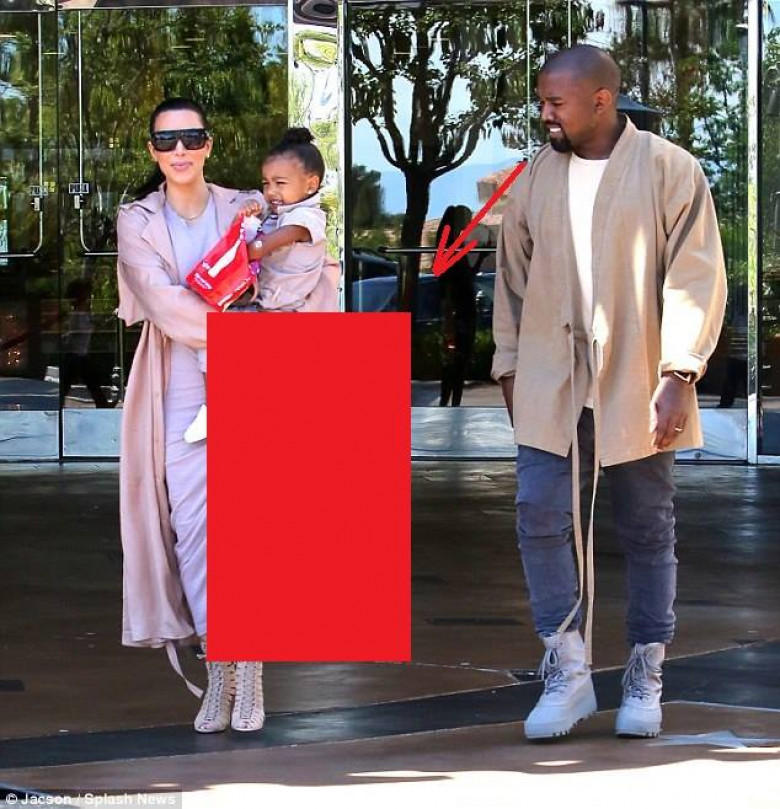 Daddy cool! Kanye was also with the family on the day and was dressed in similarly muted tones