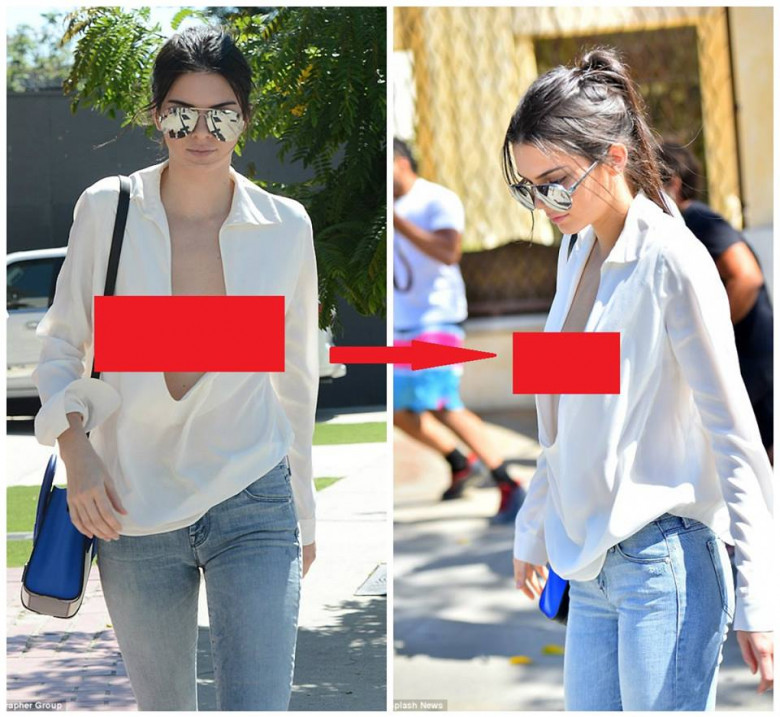 Кендалл Дженнер показала свои маленькие груди в большом вырезе кофточки (Фото)