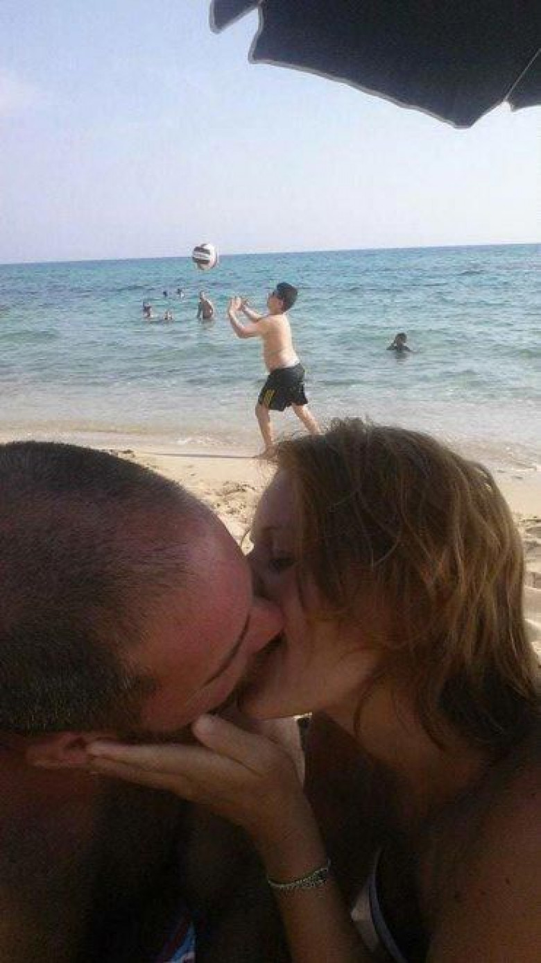 Как часто вы сталкиваетесь с тем, что фотография вам нравится, но в ней есть один огромный минус, без которого она была бы идеальной. Это произошло и с этой парой, которая привезла с отдыха фотографии, среди которых была та, которая им понравилась особенно. Романтический поцелуй, песчаный пляж, бесконечный океан и.. мальчик с мячом на заднем плане. Чтобы  исправить фото, пара попросила мастеров фотошопа убрать мальчика из кадра. Ну как вы уже догадались, тут их юморная фотошоперская душа нашла где разгуляться.