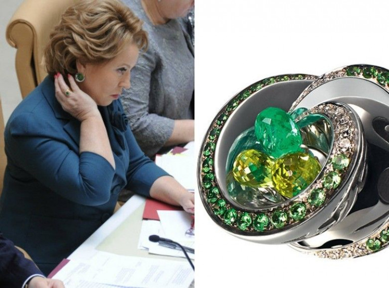 Серьги с жемчугом от премиального ювелирного бренда – не единственное дорогое украшение Валентины Матвиенко. В копилке спикера Совфеда также имеются серьги от швейцарского производителя de Grisogono. Их стоимость – 1,5 миллиона рублей.