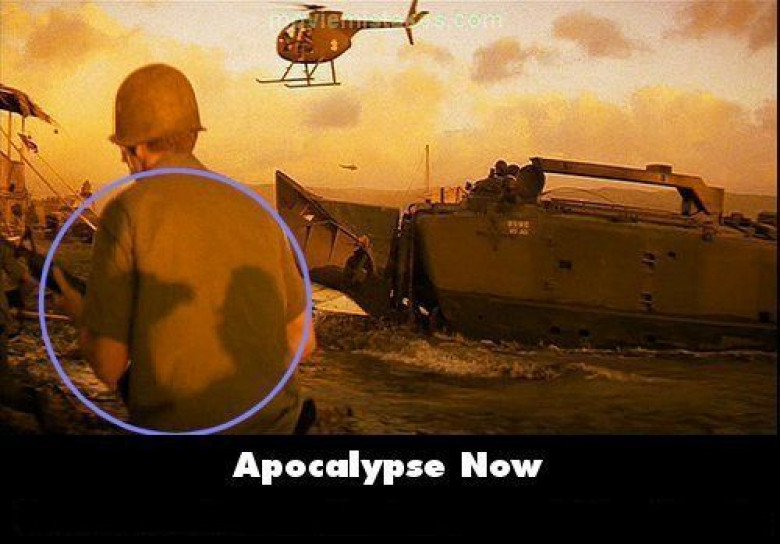 Самый явный пример: по освещенным солнцем спинам солдат пробегают тени камеры и членов съемочной группы.