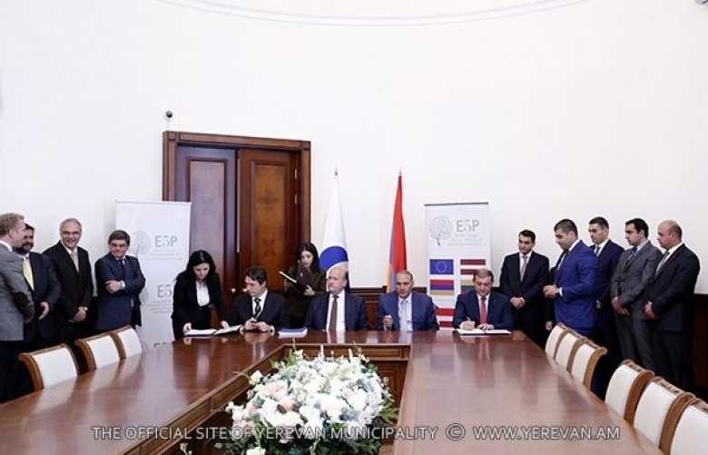 ОбществоМэр Еревана Тарон Маргарян, министр финансов РА Гагик Хачатрян, руководитель ереванского офиса ЕБРР Марк Дэвис (Европейский банк реконструкции и развития) и управляющий фонда Восточноевропейского партнёрства по энергоэффективности и окружающей среде (E5P) Андерс Лунд подписали грантовое соглашение «Программа городского освещения Еревана», в рамках которого Европейский банк реконструкции и развития за счет средств фонда Восточноевропейского партнерства по энергоэффективности и окружающей среде предоставит Республике Армения грант в размере 1,9 млн. евро. Основная цель программы заключается в создании системы энергосберегающего и безопасного наружного освещения в Ереване. В частности, планируется осуществить замену фонарных столбов на 28 столичных улицах, проведение подземных кабельных систем, применение энергосберегающих ламп, а также внедрение автоматической системы управления столичным освещением.