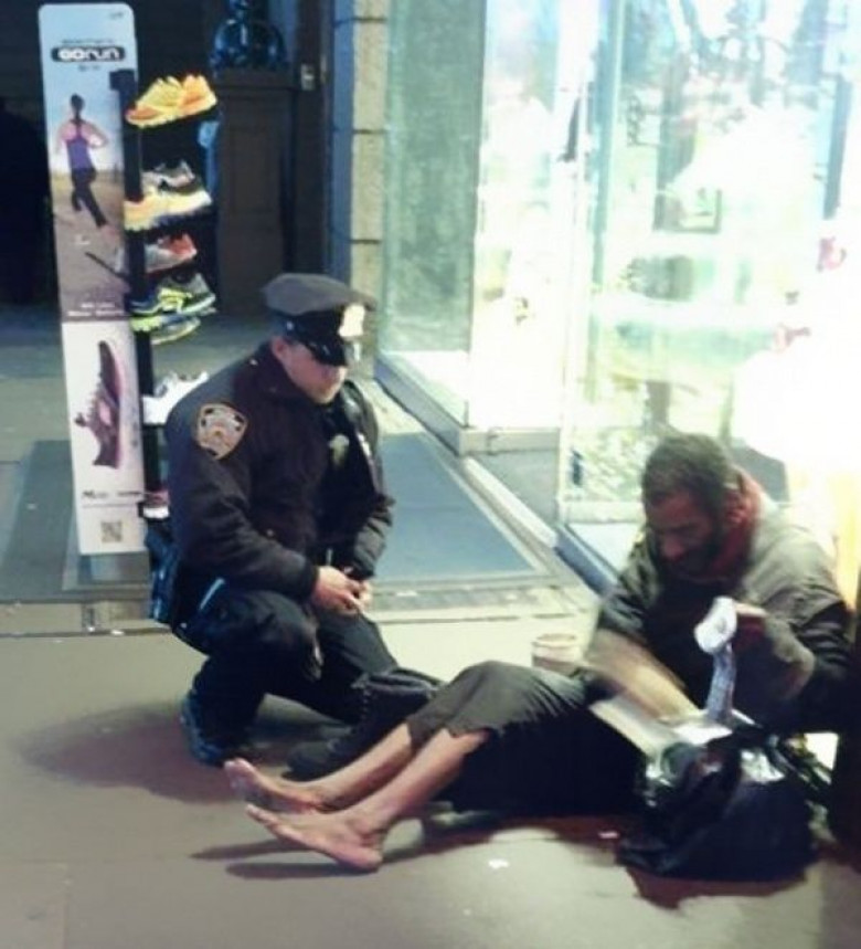 Полицейский купил обувь и носки бездомному, которого видел впервые.