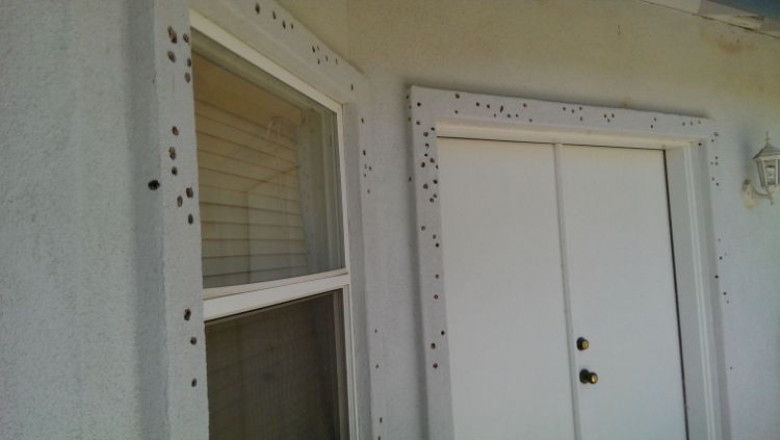 Вся задняя часть дома мужчины была в таких вот дырах, похожих на следы выстрелов
