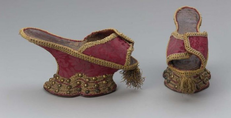 В средние века дамы носили вот такие туфли на платформе, потому что улицы города не были оборудованы канализацией и сточные воды выливались непосредственно на улицы.