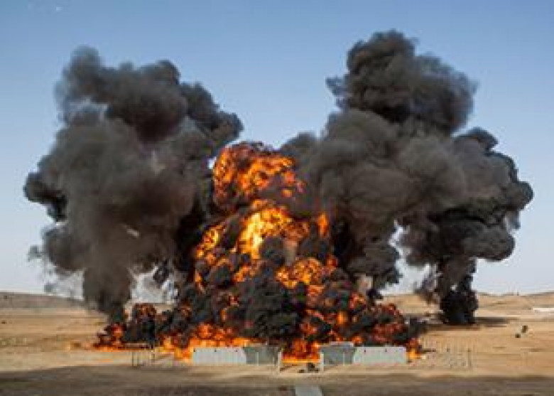 Взрыв снимался неподалеку от Эрфуда, города на востоке Марокко. Для осуществления киноэффекта пиротехники использовали 8418 литров горючего и 33 килограмма взрывчатки.