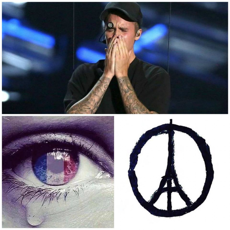 Новость о теракте настигла Джастина Бибера (21) во время его очередного концерта. Артист посчитал нужным приостановить выступление и почтить минутой молчания всех погибших в результате террористических действий.