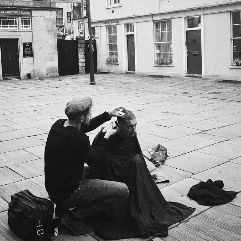 После полного рабочего дня в салоне, парикмахер Джошуа Кумбс (Joshua Coombes) не идет не домой, вместо этого он выходит на улицы города и подстригает бездомных. Будучи в Нью-Йорке он вдохновился подобным проектом и решил начать свой собственный. 28-летний парикмахер живет и работает в Эксетере, Англия, и сейчас каждый вечер к нему выстраиваются очереди из бездомных, желающих подстричься.
