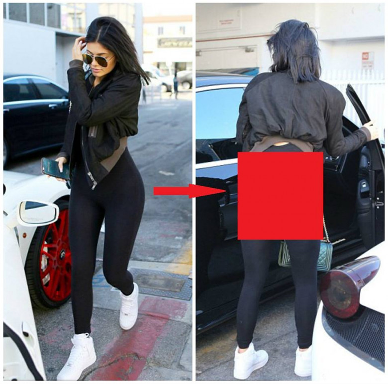 Садясь в машину в полупрозрачных легинсах Кайли Дженнер показала всем свою попу (Фото)