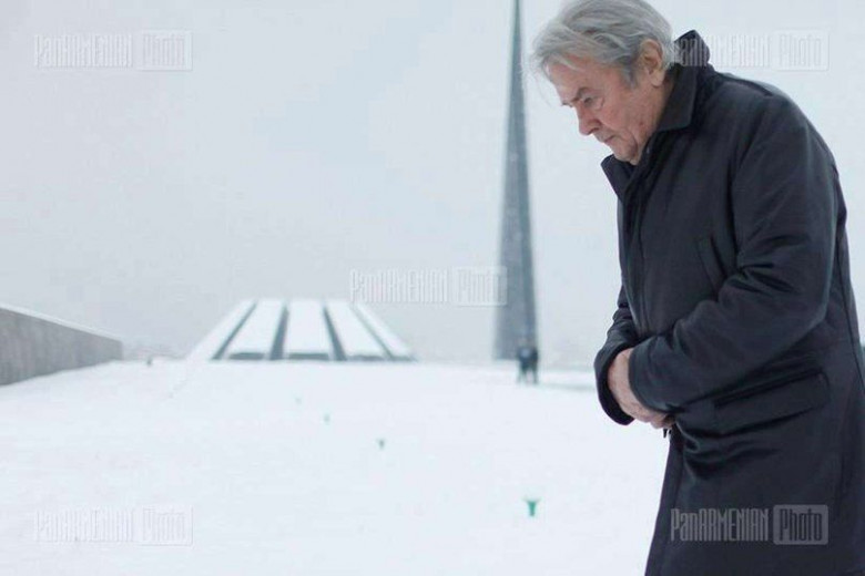 НЕСМОТРЯ НА КРАТКОСТЬ ПРЕБЫВАНИЯ В ЕРЕВАНЕ (сутки), Делон посетил Цицернакаберд, почтив память жертв Геноцида армян.