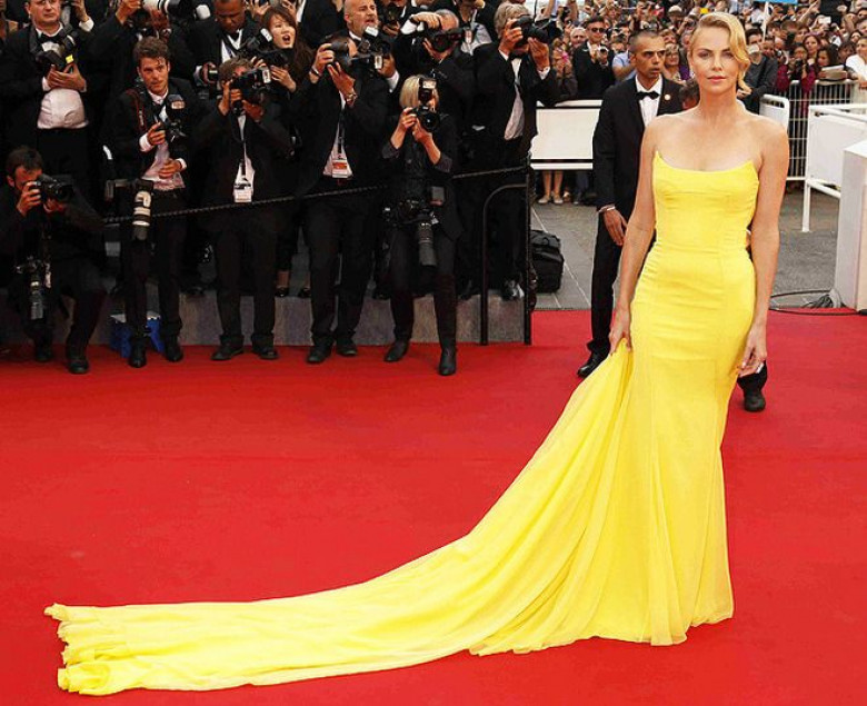 С такой потрясающей фигурой, как у Шарлиз Терон, сам бог велел носить длинные тоги ярких оттенков. Ослепительное желтое платье c длинным шлейфом от Christian Dior Couture, которое блондинка выбрала для премьеры фильма «Безумный Макс» на Каннском кинофестивале, стало одним из самых ярких образов актрисы в истории.