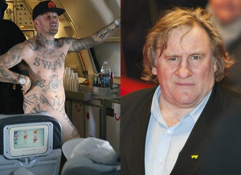 «На рейсе Париж-Дублин актера попросили оставаться в кресле, так как на табло высвечивалась надпись “пристегните ремни”. Депардье на просьбы бортпроводников оставаться на месте стал кричать, что ему срочно нужно пописать. Не получив согласия, актер взял пустую пластиковую бутылку и помочился в нее, пролив при этом немного мочи на пол. После он, правда, извинился за доставленные неудобства».