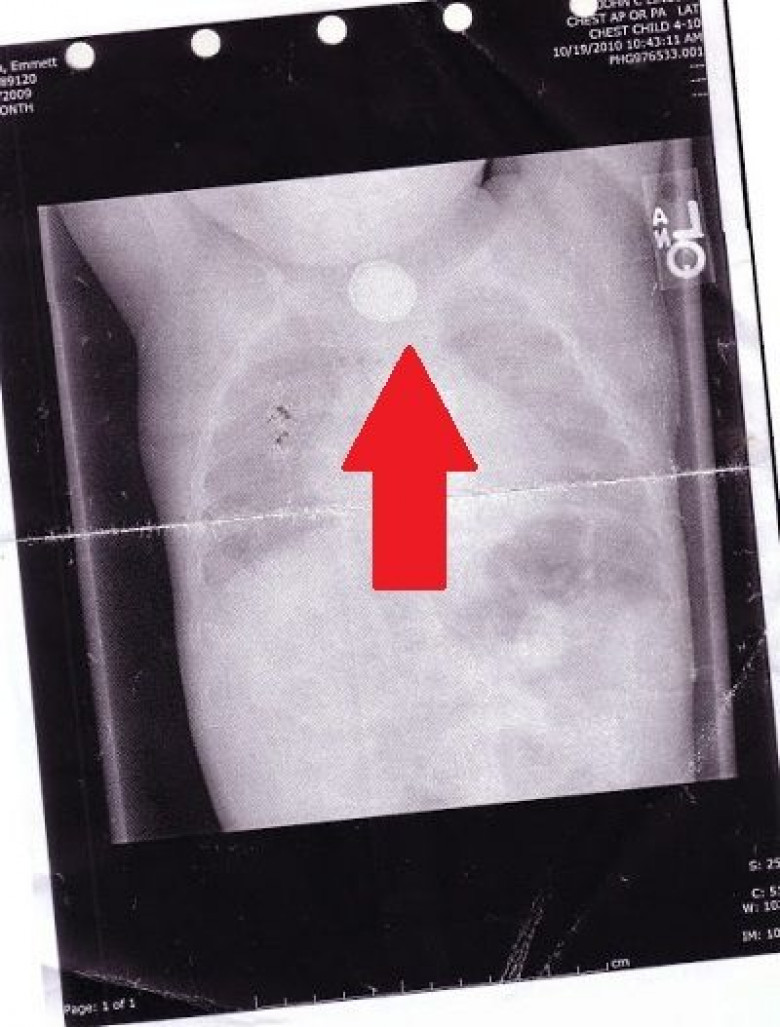 Карла и Майкл Роуч — обычная семейная пара. На фотографии супруги вместе со своими детьми, 7-летним Итаном и 5-летним Эмметом, выглядят абсолютно счастливыми. Но 4 года назад им довелось пережить настоящий кошмар. Они чуть было не потеряли маленького Эммета... Не успел малыш отпраздновать свой первый день рождения, как родители заметили, что он стал странно себя вести. Эммет был вялым и капризным и периодически кашлял. Испугавшись за здоровье сына, Карла и Майкл показали его врачу. Доктор при осмотре не выявил ничего страшного. Он решил, что это обычная простуда и назначил соответствующее лечение. Но Эммету лучше не становилось. Через несколько дней он начал кашлять кровью! Кроме того, у него началось непрекращающееся слюноотделение. Симптомы указывали на круп, но доктор решил на всякий случай направить мальчика на рентген. Снимок указал на истинную причину страданий мальчика. Оказалось, что он проглотил маленькую круглую батарейку, которую в народе называют «таблетка». Она застряла в гортани и поначалу особо не тревожила маленького Эммета. Но через некоторое время из нее потихоньку стал вытекать электролит, который начал разъедать стенки пищевода. Батарейку немедленно извлекли, но к тому времени часть щелочи уже успела из нее вытечь, нанеся мальчику огромный вред. Его гортань, пищевод и желудочно-кшечный тракт были сильно поражены электролитом. Для того чтобы вернуть малышу здоровье, ему потребовалось сделать целых 65 операций за последующие 4 года! Долгое время Эммет не мог даже самостоятельно дышать и питаться. А для того, чтобы мальчик смог разговаривать, ему пришлось сделать искусственные голосовые связки! Но, к счастью, малыш оказался настоящим бойцом. Он сумел преодолеть все невзгоды и теперь ничем не отличается от своих сверстников. Вот так обычная батарейка, которая отыщется в каждом доме, чуть не стала причиной гибели мальчика. Родители Эммета решили предупредить других людей об этой опасности, поэтому обнародовали свою историю. Так что предупреди своих знакомых о скрытой угрозе батареек — поделись с ними этой записью.