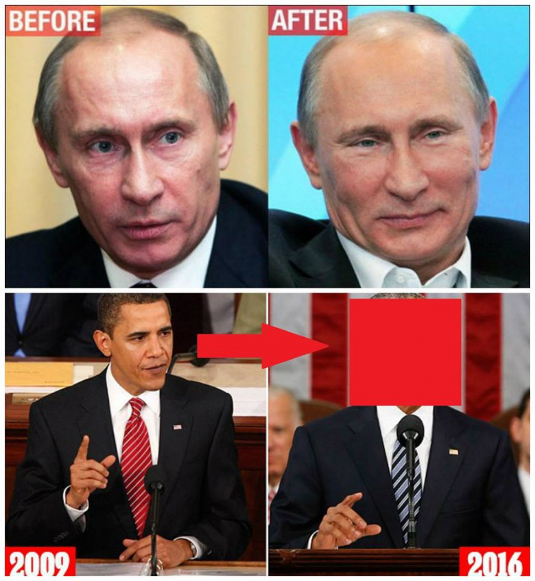 Все удивлены, как президенту России удается все лучше и лучше выглядеть с годами, многие даже пытаются уличить его в употреблении ботокса и других омолаживающих процедур. Иностранные СМИ даже пустили слух о смерти Путина и замене его двойником... Но все это всего лишь слухи. А теперь давайте посмотрим, как за годы своего президентства постарел Обама. Видимо тяжелая ноша, быть президентом Америки, а еще более тяжелая быть против Путина.