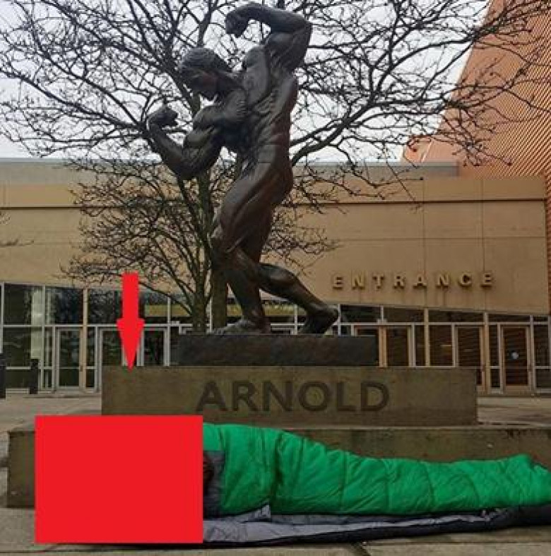 Шварценеггер прикинулся бомжом и лег спать под собственным памятником