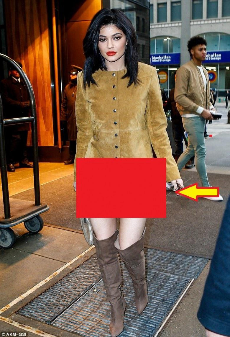 Bootsy belle! Kylie was surrounded by fans as she walked the city streetsForgot something? The TV star didnt appear to be wearing anything underneath the short jacket