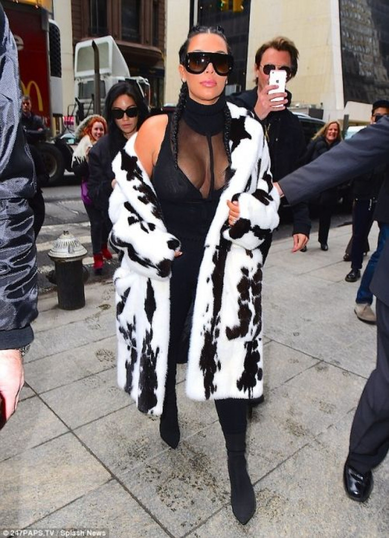 Первой и самой главной, конечно, является Ким, которая «попалась» в объективы камер в косичках, с глубоким декольте и в шубке – все это напомнило Стервеллу де Виль из «101 долматинца».