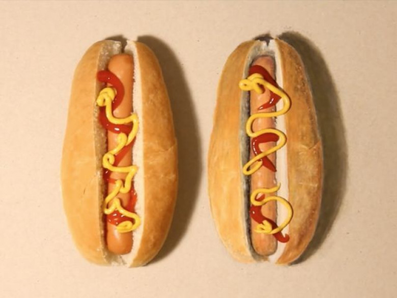 Один из этих хот-догов нарисованный. Какой именно? Ответь на вопрос и поставь конец этому спору!