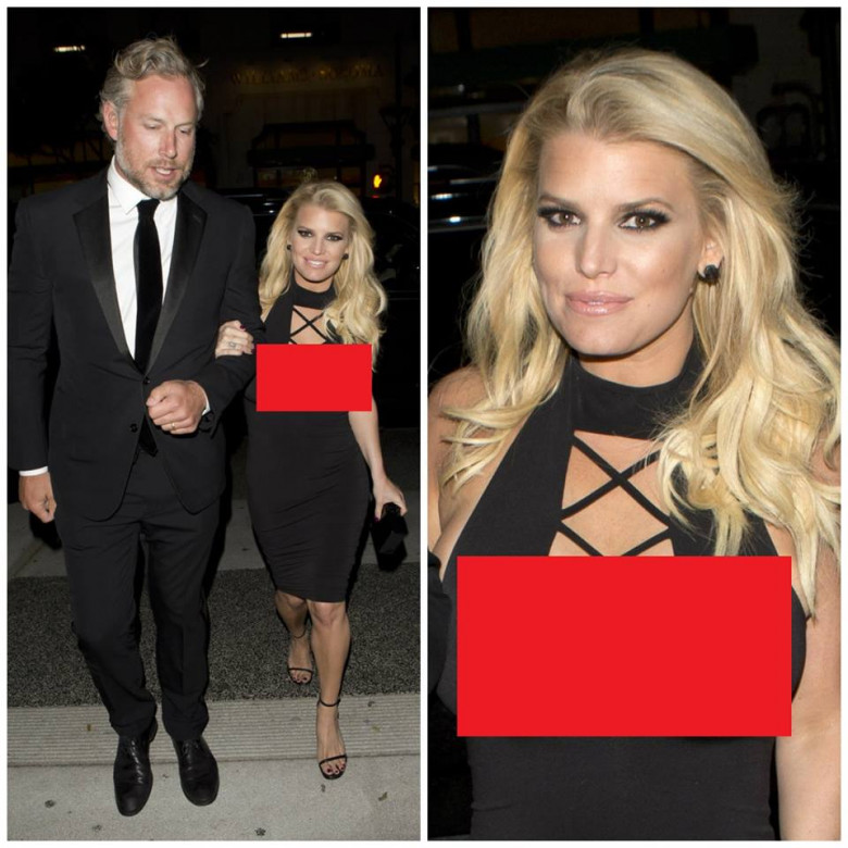 Дело в том, что певица надела черное коктейльное платье с глубоким декольте — слишком откровенным для ее более чем пышных форм. Бюст звезды едва не вывалился наружу, когда Джессика вошла в ресторан под руку с супругом!