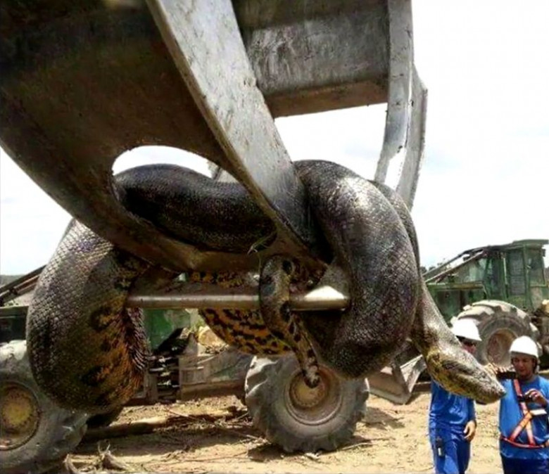 Во время строительства гидроэлектростанции «Белу-Монти» на реке Шингу неподалеку от бразильского города Алтамира специалисты проводили взрывные работы. После подрыва одной подводной пещеры глазам строителей открылась жуткая картина. Взрывной волной к берегу прибило тело огромной змеи, убрать которую удалось лишь при помощи крана-погрузчика.