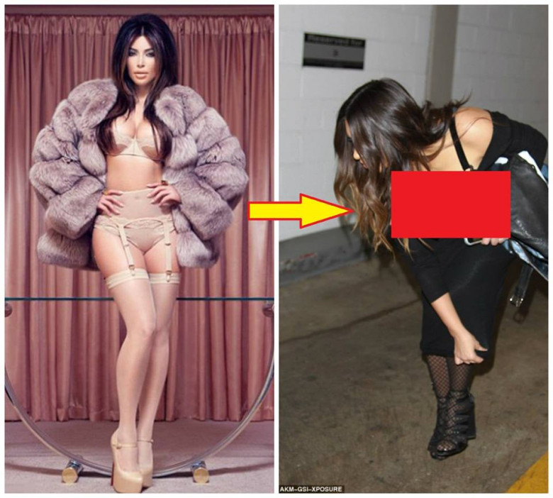 Ким Кардашьян наклонилась чтобы поправить платье и засветила свою огромную грудь (Фото)