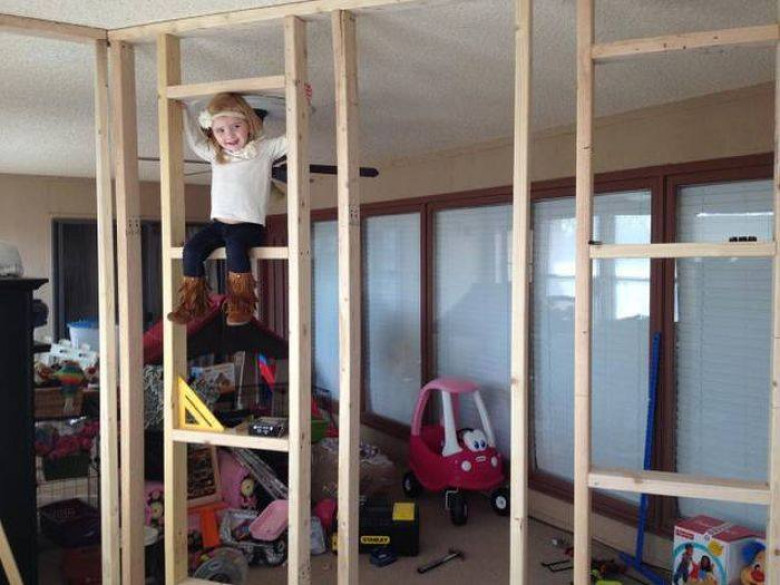 Заботливый и любящий отец построил для своих детишек небольшой дом внутри комнаты. Детям настолько понравилось это изобретение, что теперь они проводят там большую часть своего времени. А мы просто смотрим, как идея воплотилась в жизнь, благодаря прямым рукам мужчины.