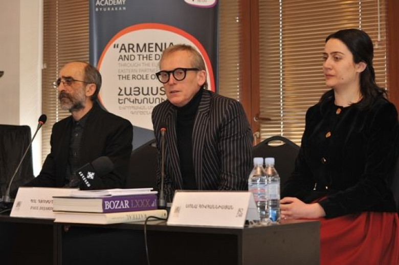 В заключение отметим, что после пресс-конференции директор и художественный руководитель Дворца изящных искусств Bozar Поль Дюжарден встретился с представителями армянской интеллигенции, в рамках обсуждения “Армения и диалог с ЕС посредством Восточного партнерства: Роль культуры”. В ходе мероприятия были затронуты вопросы, связанные с ролью, целями и проектами культурного центра Bozar, сотрудничеством Армения-ЕС и т.д.