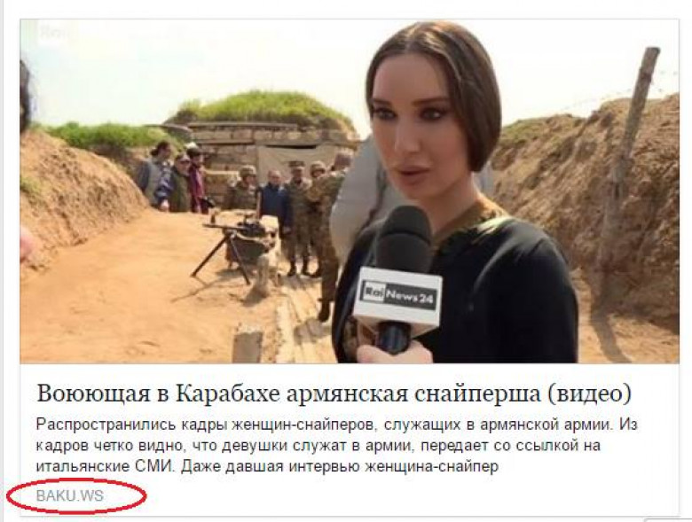 Далее, BAKU.WS отмечает, что в армянской армии женщины-снайперы или просто служащие - это обычное явление. Армяне, которые не в состоянии сражаться с войском Азербайджана лицом к лицу, защищаются, собрав на фронт женщин, детей и стариков.