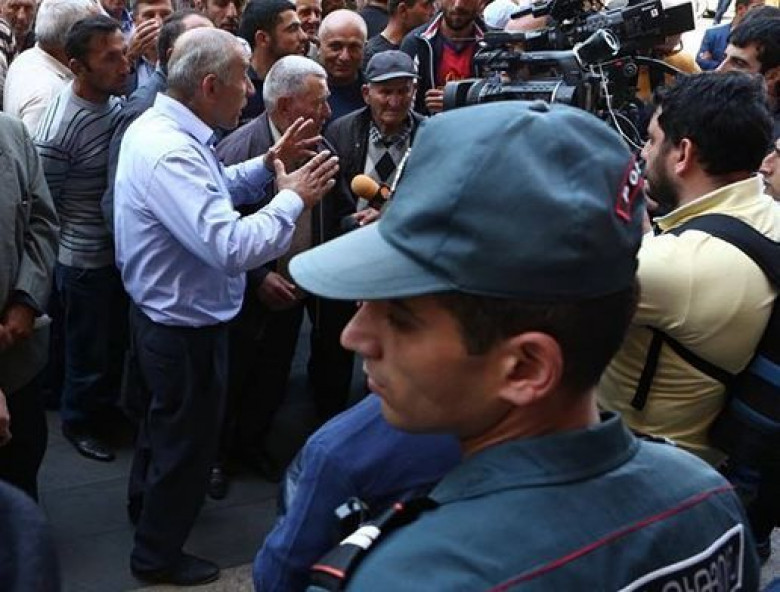 Перед зданием правительства Армении акцию протеста проводят виноградари из Араратской области