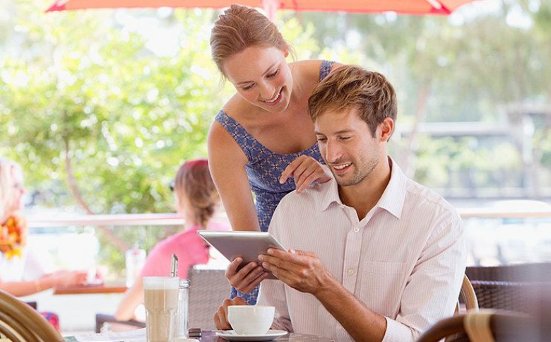 • Если он обедает, уткнувшись в свой нетбук или смартфон последней модели,скажи, что тоже присматриваешь себе такой, и спроси, нравится ли ему эта модель или фирма.