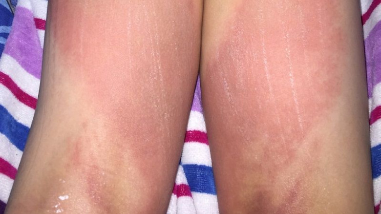 На первый взгляд, покраснение на обеих ногах напоминало обычный солнечный ожог. Вскоре кожа покрылась волдырями, и мальчик почувствовал сильное жжение.