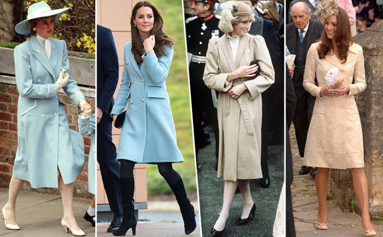 Платье-пальто в качестве универсального официального наряда получило прописку в гардеробе обеих принцесс. Диана появилась в модели серого цвета в 1985 году, Кэтрин — в 2014.