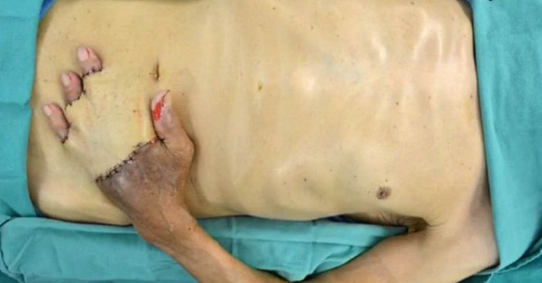 В течение трех недель рука мужчины была пришита к его собственному животу. Со стороны это выглядело очень жутко, но задумка сработала на все сто!