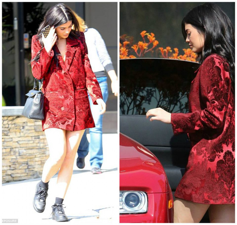 Кайли Дженнер вышла на прогулку в коротеньком пиджачке, но она явно забыла, что ей придется сесть в машину, а как это сделать, чтобы любопытные папарации не сфотографировали все твои прелести...