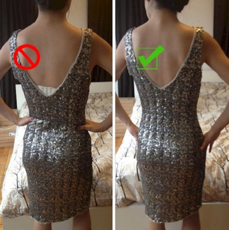 1. Как скрыть выглядывающее нижнее белье? Переделав свой бюстгальтер таким образом, ты можешь смело носить любые глубокие вырезы!