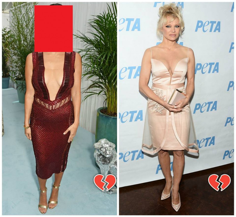 Похоже, 48-летняя звезда рассорилась со своим стилистом. Иначе как объяснить появление Памелы в платье цвета худосочного поросенка, которое вовсе не льстит ее знаменитой груди?