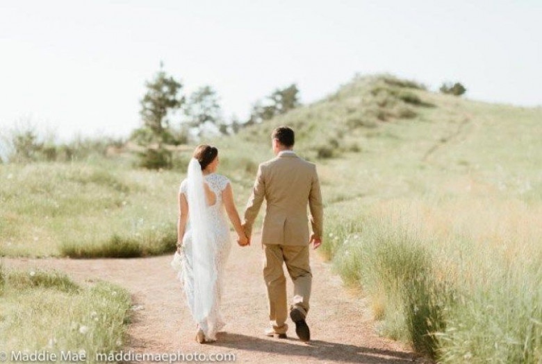 Свадебная фотосессия Бенсонов проходила недалеко от водохранилища Хорсетут, расположенного в Форт-Коллинс, Колорадо, США. Пара просто шла по дороге, как вдруг Джонни почувствовал удар в голень