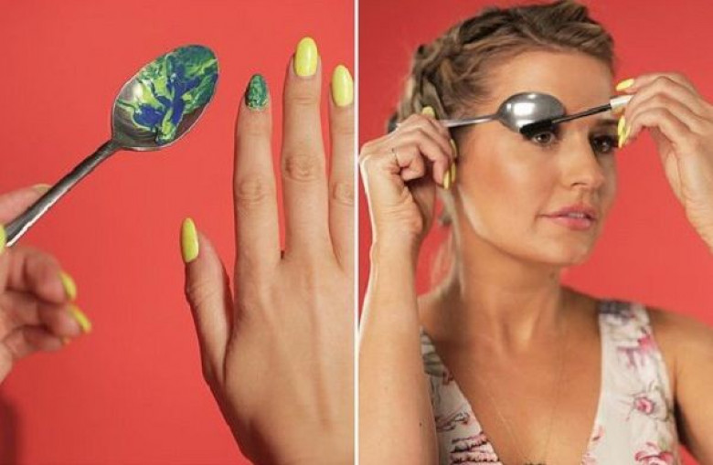 - Так можно использовать ложку для красоты. Чрезвычайно легко наносить румяна и тени!