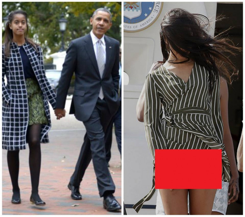 Мишель Обама вместе с дочерью Малией прилетела в Испанию. Но Мадрид встретил их сильным ветром, к чему обе были не готовы. Мишель была одета в струящееся платье, которое мгновенно отреагировало на порывы ветра и чуть было не оголило первую леди США. А вот Малии справиться с ветром едва ли удалось. Девушка появилась на трапе самолета в коротком платье с запахом, а уложенной прическе она предпочла распущенные волосы. В итоге девушка решила не обращать внимания на локоны, закрывшие лицо, и придерживала коротенькую юбочку, которая все-таки оголила бедра девушки.