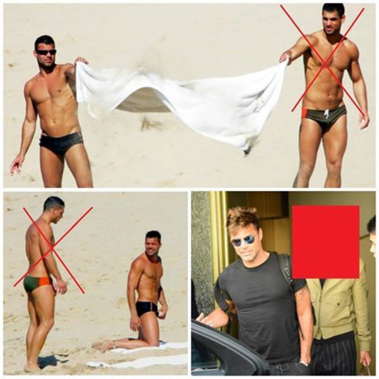 Рики Мартин со своим бойфрендом Джваной Йосефаном на прошлой неделе на выходе из отеля Armani Hotel в Милане.