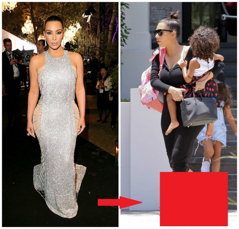 10 июля папарацци заметили звезду реалити на одной из улиц Лос-Анджелеса. Ким Кардашьян, отправившаяся на семейный обед с мужем и дочерью, была одета в черное трикотажное платье с вырезом на спине и шлепанцы.