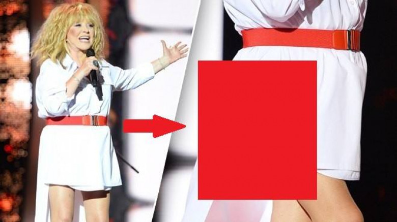 Сюрпризом для зрителей стал внешний вид Примадонны. Заметно похудевшая звезда вышла на сцену Витебска в хлопковом платье-рубашке, которое во время движения едва прикрывало интимные места супруги Галкина.  Фото: LIFE