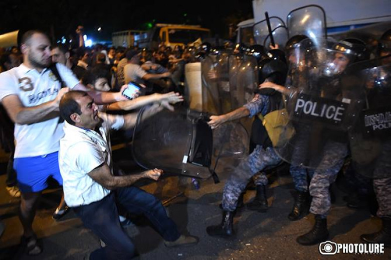 Ситуация у захваченного здания полка патрульно-постовой службы полиции в Ереване накалилась вечером в среду. Собравшиеся у здания сторонники захвативших здание вооруженных лиц потребовали решить вопрос с их питанием. В частности, они хотят, чтобы еду им подвозили не полицейские, а оппозиционный депутат Никол Пашинян. После этого, они попытались прорвать полицейский кордон.