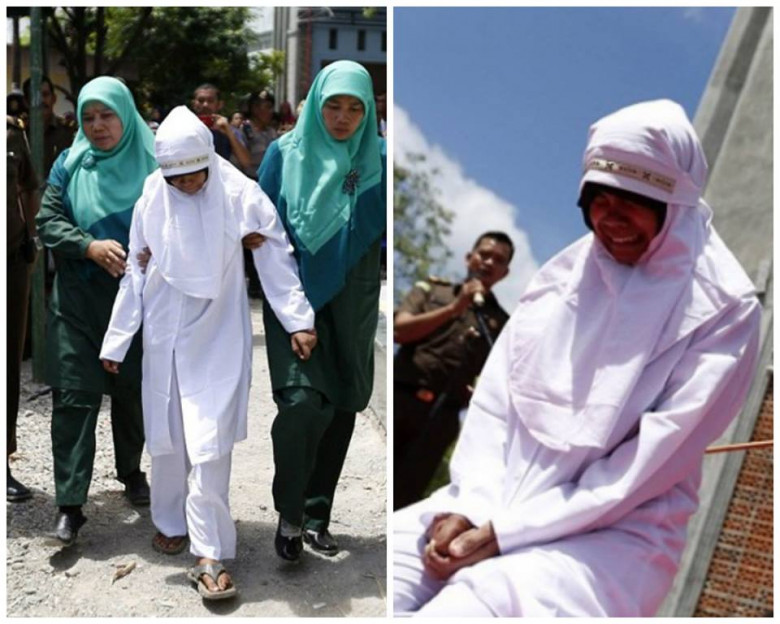 Эти люди кричат и вырываются, но законы шариата неумолимы: пары, позволившие себе слишком многое, не будучи женатыми, получат жестокое наказание. Эти фотографии - свидетельство того, как исламские фундаменталисты карают прелюбодеев в Индонезии.