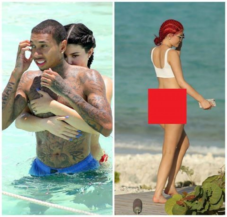 Младшая из пяти знаменитых сестер Кардашьян Кайли Дженнер отправилась на Багамские острова, чтобы отметить свой 19-й день рождения. На пляже обладательница пышных форм появилась с ярко-красными волосами, заплелетенными в косички, и продемонстрировала татуировку на ягодице.